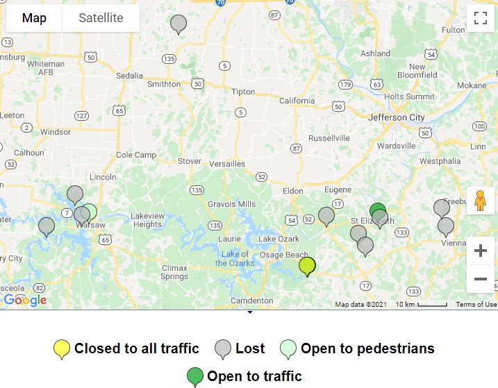 Lost suspension bridge over Osage River