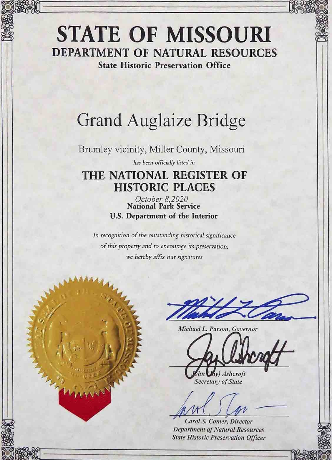 The Brumley Swing Bridges was recognized in the National Register of Historic Places on October 8, 2020.